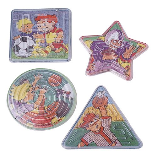 In this sports maze puzzle you move the metal ball through the maze to score points. Fun party favor bag item. Assorted shapes and styles. Size 2 L. U.S. Toy Exclusive!"